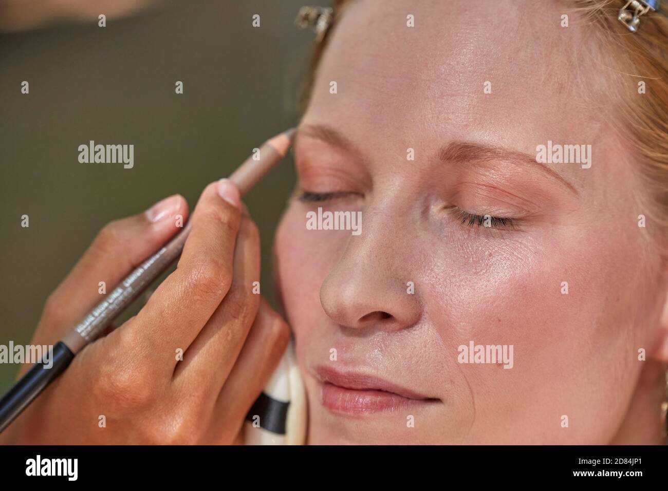 Makeup Artist Working During Photoshoot Stock Photo Alamy